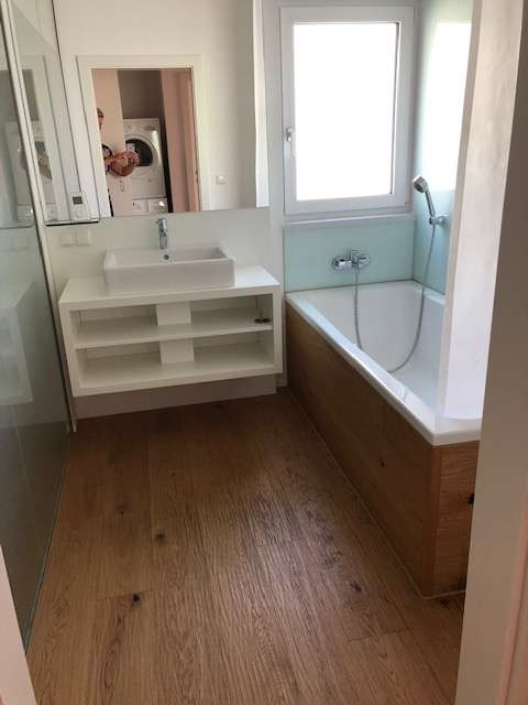 Nachmieter für eine stillvolle SmartHome Wohnung im 1OG inklusive modernen Badezimmer, Einbauküche, Klimaanlage, Parkettboden, diversen Einbaukästen, Raffstores, Wäschetrockner sowie Waschmaschine.